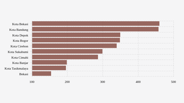 Kota Bogor dan kota Cirebon berada di posisi selanjutnya dengan catatan jumlah konfirmasi positif sebesar 348,37 jiwa per 100 ribu penduduk/minggu dan 339,23 jiwa per 100 ribu penduduk/minggu.