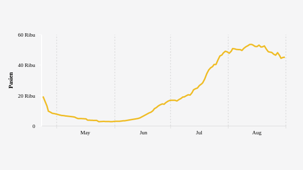 Kasus aktif Covid-19 di Indonesia hari ini naik. Berdasarkan laporan Satgas Penanganan Covid-19, jumlah kasus aktif Covid-19 di Indonesia kini ada 45.208 kasus aktif per Rabu, 31 Agustus 2022.