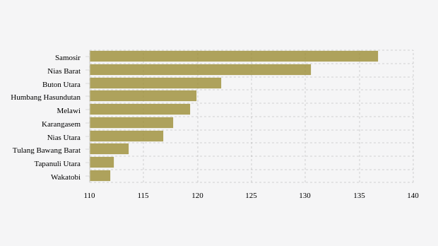 Vaksinasi 1 ktp lima kabupaten/kota teratas dengan angka lebih dari 119,3 persen, yaitu Samosir, Nias Barat, Buton Utara, Humbang Hasundutan dan Melawi dengan masing-masing nilai 136,65 persen, 130,48 persen, 122,22 persen, 119,89 persen dan 119,3 persen.
