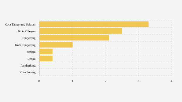 Kota tangerang selatan berada di urutan pertama dengan BOR tertinggi sebesar 3,33 persen. Kondisi BOR di kota ini terlihat belum membaik karena terjadi peningkatan dibandingkan pekan sebelumnya yang tercatat 2,19 persen.