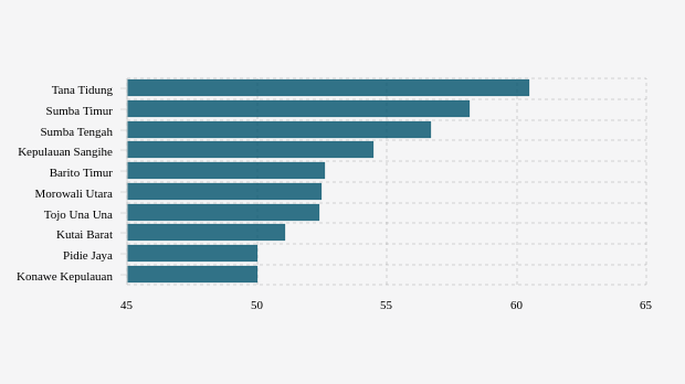 positivity rate tujuh hari terakhir lima kabupaten/kota teratas dengan angka lebih dari 52,63 persen, yaitu Tana Tidung, Sumba Timur, Sumba Tengah, Kepulauan Sangihe dan Barito Timur dengan masing-masing nilai 60,47 persen, 58,16 persen, 56,67 persen, 54,55 persen dan 52,63 persen.