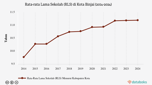 RLS tersebut menunjukkan rata-rata penduduk Kota Binjai hanya sekolah sampai jenjang kelas XI. RLS itu lebih baik dari rata-rata RLS nasional yang 8,85 tahun pada 2024.