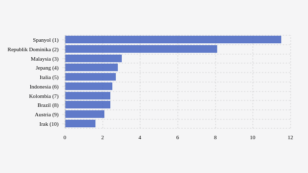 Berikutnya adalah Republik Dominika yang mencatatkan penambahan kasus Omicron 8,08 persen lebih tinggi dibandingkan pekan lalu. Sedangkan untuk data harian, penambahan kasus Omicron di negara ini naik 8,08 persen dibandingkan kemarin.