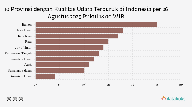 Berikut daftar 10 provinsi dengan indeks kualitas udara terburuk di Indonesia pada Selasa, 26 Agustus 2025 pukul 18.00 WIB.