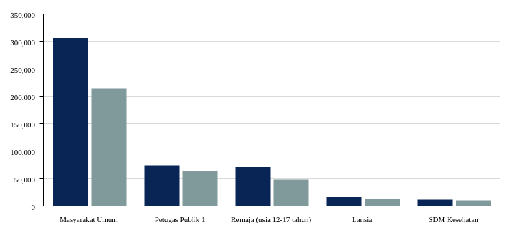 Sasaran lainnya, untuk kelompok remaja mulai dari usia 12-17 tahun. Di wilayah ini target yang ditetapkan sebanyak 127,91 ribu jiwa. Untuk vaksinasi dosis 1 telah diberikan kepada 71,15 ribu jiwa (55,62 persen target). Adapun dosis 2 baru tercapai 38,11 persen atau tersalurkan kepada 48,75 ribu jiwa