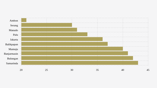 Pada waktu tersebut, kualitas udara Ambon tergolong baik yang berarti kadar polutan di udara Ambon sangat minim. Selanjutnya, Serang menempati posisi kedua dengan indeks kualitas udara 30. Berikutnya, ada Manado di posisi ketiga dengan indeks kualitas udara 31.