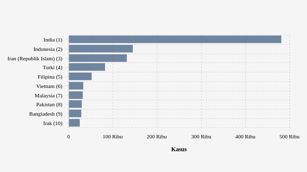 Terhadap statistik global, total kematian di Asia adalah 23,07 persen dari total kasus di seluruh negara. Sementara itu di urutan teratas dengan kematian tertinggi di Asia adalah India.