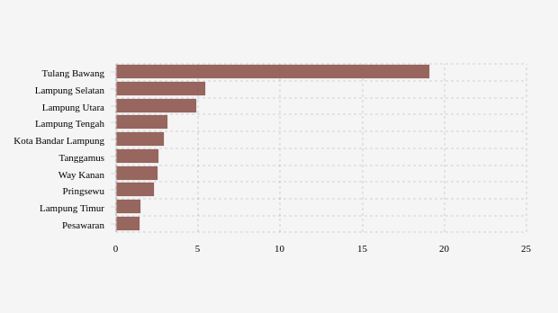 Urutan selanjutnya ditempati Lampung Selatan dan Lampung Utara yang masing-masing dengan catatan BOR sebesar 5,39 persen dan 4,86 persen