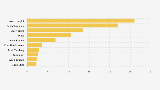 Pidie dan kota Sabang berada di posisi selanjutnya dengan catatan BOR sebesar 10,59 persen dan 6,79 persen.