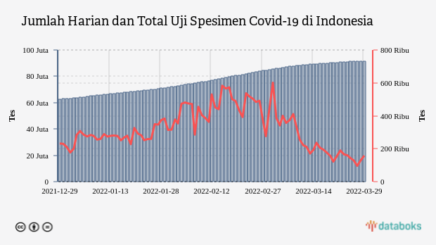 Tes Covid-19 Indonesia 158,1 ribu Spesimen per Hari (Selasa, 29 Maret 2022)