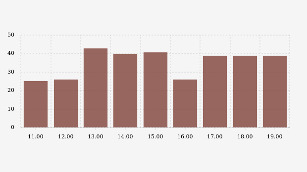 Konsentrasi PM2.5 udara Jakarta terendah berada di level 25,1 µg/m³ pada pukul 11.00 WIB, sedangkan konsentrasi PM2.5 tertinggi pada pukul 13.00 WIB dengan nilai 42,8 µg/m³.