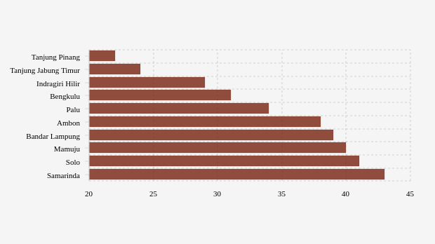 Daftar kota-kota dengan kualitas udara paling bersih di Indonesia menurut Kementerian Lingkungan Hidup dan Kehutanan (KLHK) pada Minggu (24 Desember 2023 pukul 06.00 WIB.