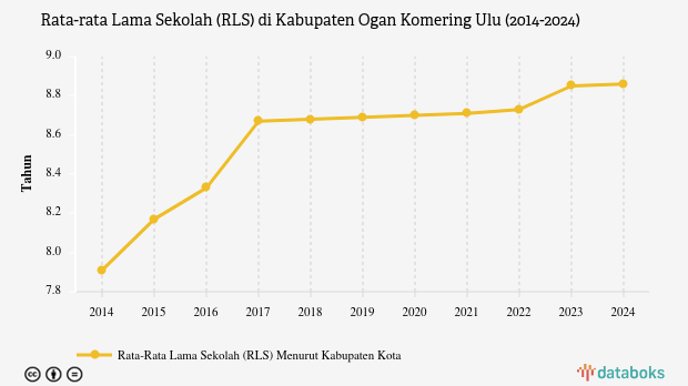 Berdasarkan data Badan Pusat Statistik (BPS), RLS penduduk wilayah tersebut berada di atas rata-rata Provinsi Sumatera Selatan yang sebesar 8,57 tahun pada 2024.