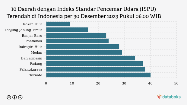 Rokan Hilir menjadi kota dengan kualitas udara paling bersih di Indonesia pada Sabtu (30/12) pukul 06.00 WIB.
