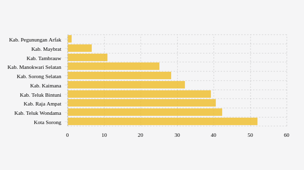 Menyusul berikutnya adalah kabupaten Maybrat. Untuk vaksinasi dosis 2, daerah ini masuk nomor dua terendah. Dengan sasaran vaksin sebanyak 32.163 peserta, namun baru direalisasikan 6,51 persen atau 2.095 peserta.