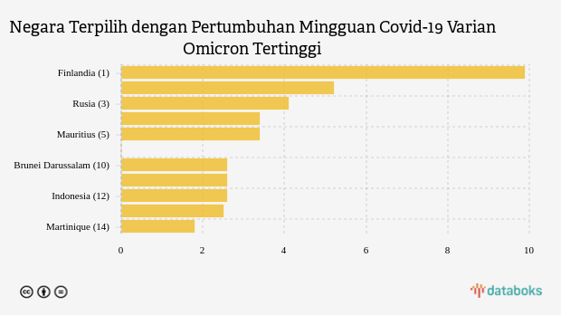 Virus Covid-19 varian Omicron (B.1.1.529) di dunia semakin menyebar dan telah mencapai 5,74 juta kasus pada Rabu, 14 Desember 2022. Berdasarkan data GISAID, Finlandia tercatat memiliki penambahan kasus Omicron terbanyak, yaitu 17.860 kasus. Jumlah total kasus varian Omicron di Finlandia saat ini setara dengan 0,31 persen dari total kasus di dunia.