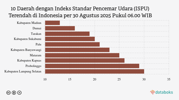 Berikut daftar lengkap 10 kota dengan kualitas udara paling bersih di Indonesia menurut KLHK pada Sabtu, 30 Agustus 2025 pukul 06.00 WIB.