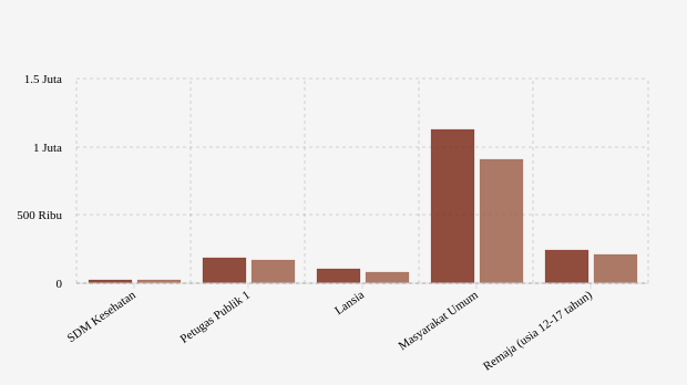 Berdasarkan kelompok sasaran, rincian vaksinasi untuk menangkal virus Covid-19 di provinsi ini yakni kelompok SDM kesehatan dengan target 19,93 ribu peserta. Pada dosis 1, berhasil dilakukan vaksinasi sebanyak 19,93 ribu jiwa (122,48 persen target) dan untuk vaksinasi dosis 2 telah tercapai 120,14 persen atau 23,94 ribu jiwa.