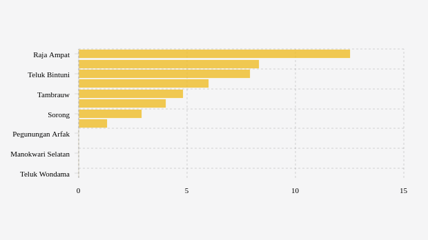 Kondisi yang sama terjadi di Sorong Selatan yang mencatatkan positivity rate aglomerasi tujuh hari terakhir sebesar 8,33 persen. Di kabupaten ini, positivity rate aglomerasi tujuh hari terakhir juga terlihat lebih tinggi dibandingkan pekan sebelumnya yang tidak dilaporkan adanya positivity rate aglomerasi tujuh hari terakhir. Di urutan berikutnya Teluk Bintuni. Kabupaten di provinsi Papua Barat ini mencatatkan positivity rate aglomerasi tujuh hari terakhir sebesar 7,89 persen