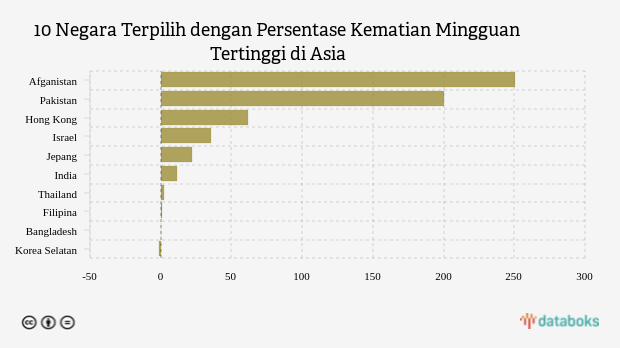 10 Negara Terpilih dengan Persentase Kematian Mingguan Tertinggi di Asia