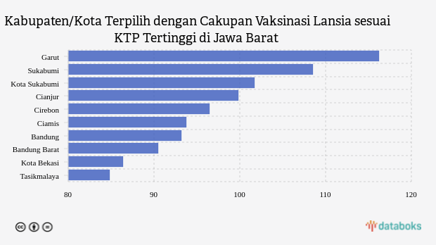 Daftar Kabupaten/Kota dengan Cakupan Vaksinasi Lansia sesuai KTP Tertinggi di Jawa Barat (Sabtu, 23 Juli 2022)