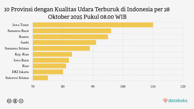 Berikut daftar 10 provinsi dengan indeks kualitas udara terburuk di Indonesia pada Selasa, 28 Oktober 2025 pukul 08.00 WIB.