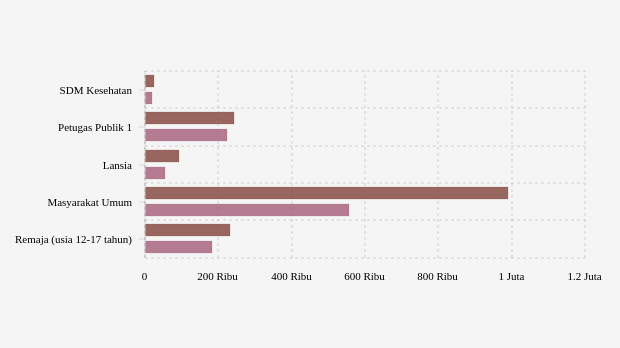 Kemudian vaksinasi ke lansia menarget sebanyak 141,02 ribu jiwa. Untuk dosis 1, telah diberikan kepada 93,93 ribu jiwa (66,61 persen target). Sedangkan untuk vaksinasi dosis 2 baru tercapai 39,46 persen atau 55,64 ribu jiwa.