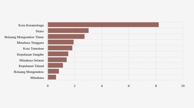 Kondisi yang sama terjadi di Sitaro yang mencatatkan jumlah konfirmasi positif Covid-19 mingguan sebesar 2,97 jiwa per 100 ribu penduduk/minggu. Di kota ini, jumlah konfirmasi positif Covid-19 mingguan juga terlihat lebih tinggi dibandingkan pekan sebelumnya yang baru 1,48 jiwa per 100 ribu penduduk/minggu. Di urutan berikutnya Bolaang Mongondow Timur. Kota di provinsi Sulawesi Utara ini mencatatkan jumlah konfirmasi positif Covid-19 mingguan sebesar 2,7 jiwa per 100 ribu penduduk/minggu