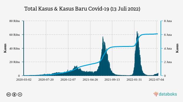 Pasien positif Covid-19 bertambah 3.822 orang per 13 Juli 2022.