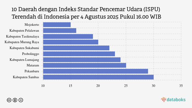 Berikut ini daftar 10 kota dengan kualitas udara paling bersih di Indonesia menurut KLHK pada Senin, 4 Agustus 2025 pukul 16.00 WIB.