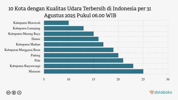 10 Daerah dengan Udara Pagi Hari (31/8) Paling Bersih di Indonesia