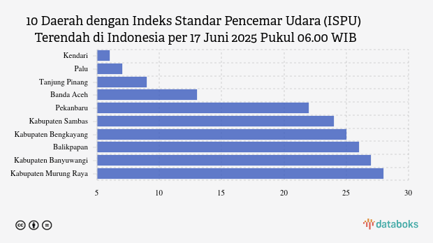 Berikut daftar lengkap 10 kota dengan kualitas udara paling bersih di Indonesia menurut KLHK pada Selasa, 17 Juni 2025 pukul 06.00 WIB.