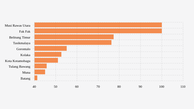 Wilayah di luar Jawa dengan nilai BOR tertinggi beberapa di antaranya adalah Musi Rawas Utara, Fak Fak dan Belitung Timur dengan masing-masing BOR yakni 100 persen, 100 persen dan 77,27 persen.