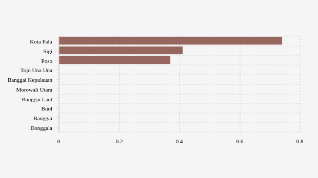 Berikutnya di posisi kedua adalah Sigi. Kabupaten ini mencatatkan angka konfirmasi mingguan 0,41 kasus per 100 ribu penduduk. Dibandingkan pekan lalu yang mencapai 0,82 kasus, jumlah terkonfirmasi Covid-19 pekan ini terlihat lebih rendah.