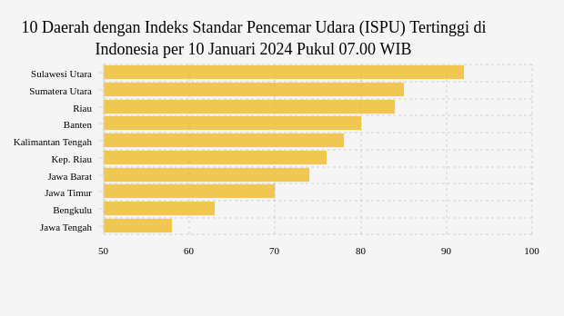 Berikut daftar 10 provinsi dengan indeks kualitas udara terburuk di Indonesia pada Rabu, 10 Januari 2024 pukul 07.00 WIB.