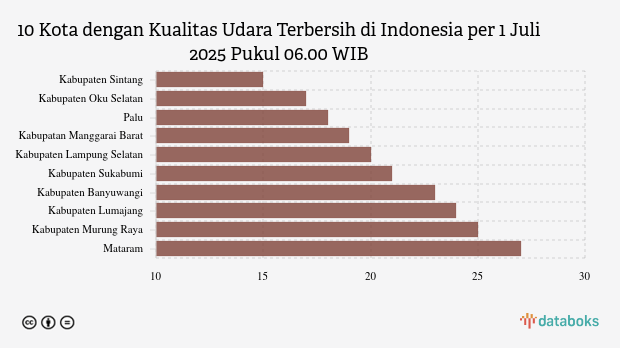 Berikut daftar lengkap 10 kota dengan kualitas udara paling bersih di Indonesia menurut KLHK pada Selasa, 1 Juli 2025 pukul 06.00 WIB.