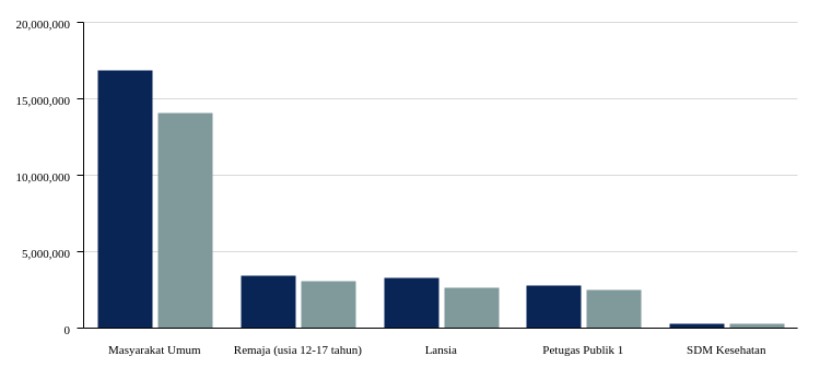 Vaksinasi ke masyarakat umum yang rentan ditargetkan sebanyak 21,64 juta jiwa. Pada dosis 1, vaksinasi dilaporkan telah diberikan sebanyak 16,85 juta jiwa (78,18 persen target). Sedangkan untuk vaksinasi dosis 2 baru tercapai 65,2 persen atau 14,05 juta jiwa.