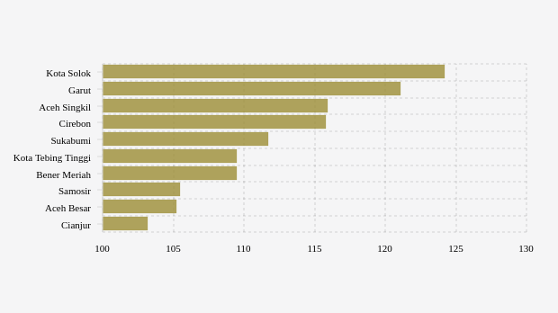 Vaksinasi lansia lima kabupaten/kota teratas dengan angka lebih dari 111,7 persen, yaitu kota Solok, Garut, Aceh Singkil, Cirebon dan Sukabumi dengan masing-masing nilai 124,21 persen, 121,13 persen, 115,86 persen, 115,79 persen dan 111,7 persen.
