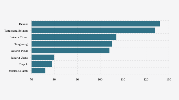 Ini menunjukkan bahwa kota-kota di Jabodetabek seperti Bekasi, Tangerang Selatan, dan Jakarta Timur memiliki kualitas udara tidak sehat.