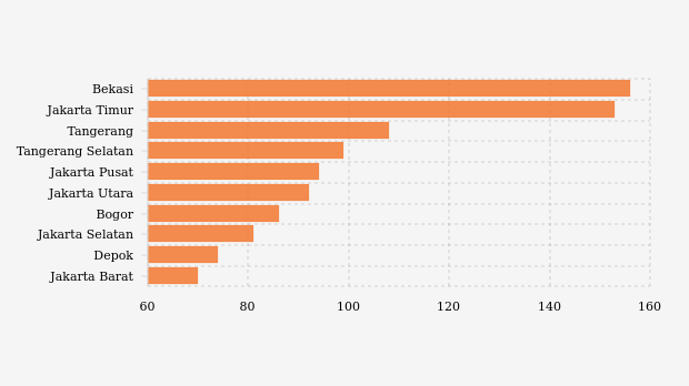 Ini menunjukkan bahwa kota-kota di Jabodetabek seperti Bekasi, Jakarta Timur, dan Tangerang memiliki kualitas udara tidak sehat.