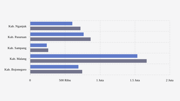 Kabupaten Nganjuk di Jawa Timur, telah menggunakan vaksin sebanyak 717,89 ribu dosis vaksin per Minggu, 21 November 2021. Jumlah ini tumbuh 18,99 persen dibandingkan penggunaan vaksin minggu kemarin yang baru di angka 603,3 ribu.