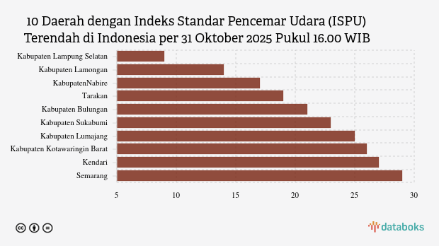 Berikut daftar lengkap 10 kota dengan kualitas udara paling bersih di Indonesia menurut KLHK pada Jumat, 31 Oktober 2025 pukul 16.00 WIB.