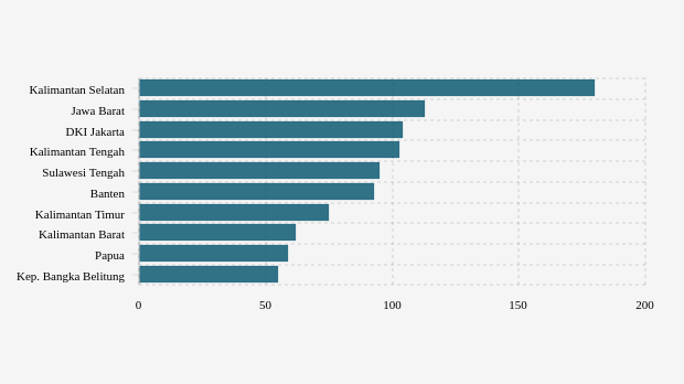 1. Kalimantan Selatan: 180