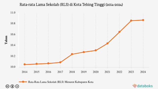 Rata-rata lama sekolah (RLS) penduduk berusia 25 tahun ke atas di Kota Tebing Tinggi, Sumatera Utara mencapai 10,87 tahun pada 2024.