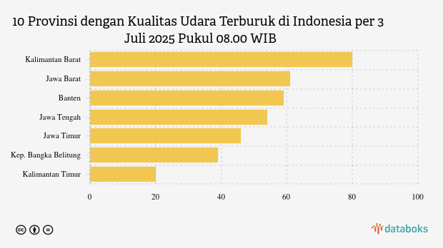 Berikut daftar 10 provinsi dengan indeks kualitas udara terburuk di Indonesia pada Kamis, 3 Juli 2025 pukul 08.00 WIB.
