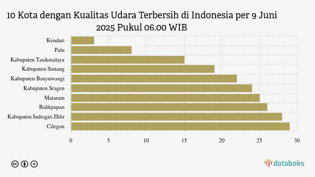 Berikut daftar lengkap 10 kota dengan kualitas udara paling bersih di Indonesia menurut KLHK pada Senin, 9 Juni 2025 pukul 06.00 WIB.