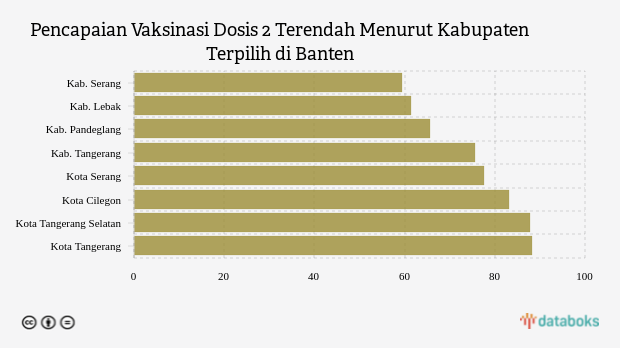 Sebagian wilayah kabupaten/kota di provinsi Banten masih mencatatkan tingkat vaksinasi dosis 2 yang cukup rendah dibandingkan wilayah lainnya. Beberapa kabupaten/kota tersebut di antaranya kabupaten Serang, kabupaten Lebak dan kabupaten Pandeglang.
