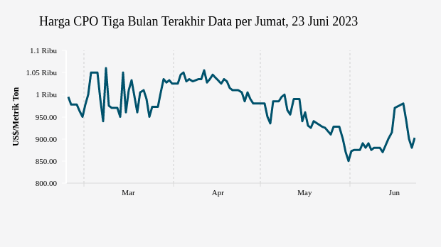 Harga CPO Tiga Bulan Terakhir Data per Jumat, 23 Juni 2023
