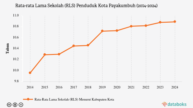 Rata-rata lama sekolah (RLS) penduduk berusia 25 tahun ke atas di Kota Payakumbuh, Sumatera Barat mencapai 10,89 tahun pada 2024.
