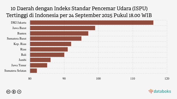 Berikut daftar 10 provinsi dengan indeks kualitas udara terburuk di Indonesia pada Rabu, 24 September 2025 pukul 18.00 WIB.